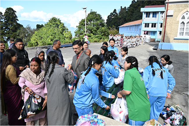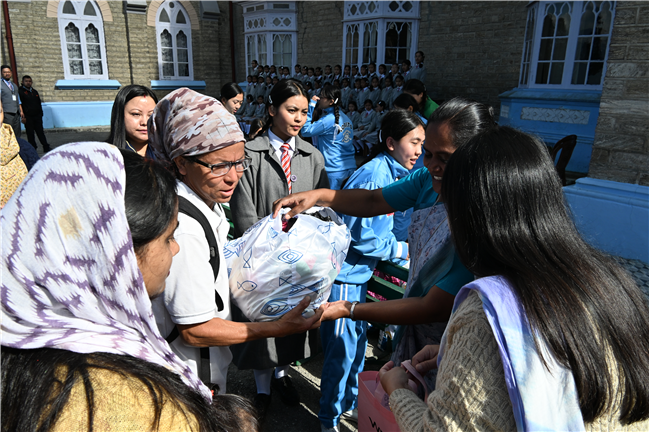 On the 6th of November, 2025 the Leadership Training Service club held a ration distribution program for the local people of Darjeeling town. Students from classes VI to XII had brought several amenities a week prior, including flour, tea leaves, towels, toiletries, and more. This joint spirit of contribution and goodwill enabled our club members to gather in front of the house and distribute rations to people with coupons early in the morning. We were accompanied by our teachers in charge and pleased to see a large number of people gathered together. The day was filled with joy and blessings as mothers, workers, and even little children received the bags. It showed that generosity leads us not only to become better people, but also connects us with those around us. Sharing, helpfulness and community service are the major driving factors of our club.