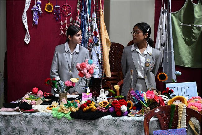 The hall was adorned with colourful pieces of art crafted by the young talents. Knitted and crocheted items, clay sculptures, keychains, masks, dollhouses, handmade soaps, candles, and various other items were beautifully displayed.